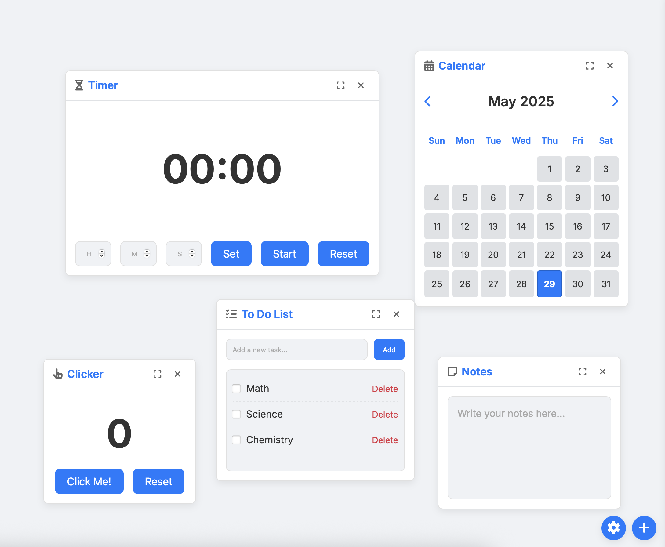 This powerful desktop app features an array of widgets including a Calculator, To-Do List, PDF Viewer, Calendar, and more. Easily drag, resize, and personalize your dashboard with custom colors and backgrounds to create your perfect workspace.
